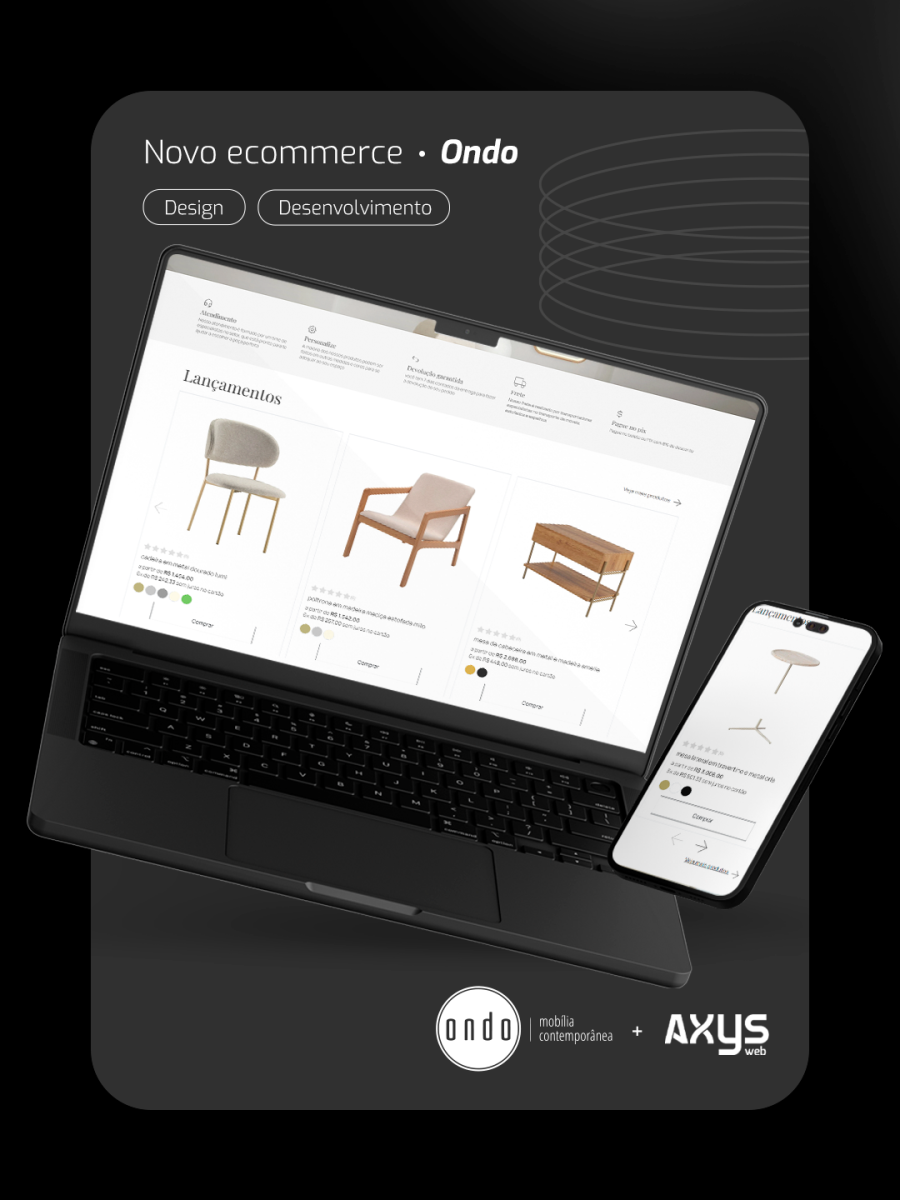 Para potencializar essa proposta no ambiente digital, desenvolvemos o novo e-commerce da Ondo, com layout totalmente personalizado, refletindo o posicionamento da marca e valorizando seus produtos. A plataforma B2C conta com integração completa com o ERP, além de um módulo customizado de gestão de cashback, que amplia as possibilidades de relacionamento e fidelização com os clientes. O resultado é uma experiência de compra moderna, fluida e eficiente.